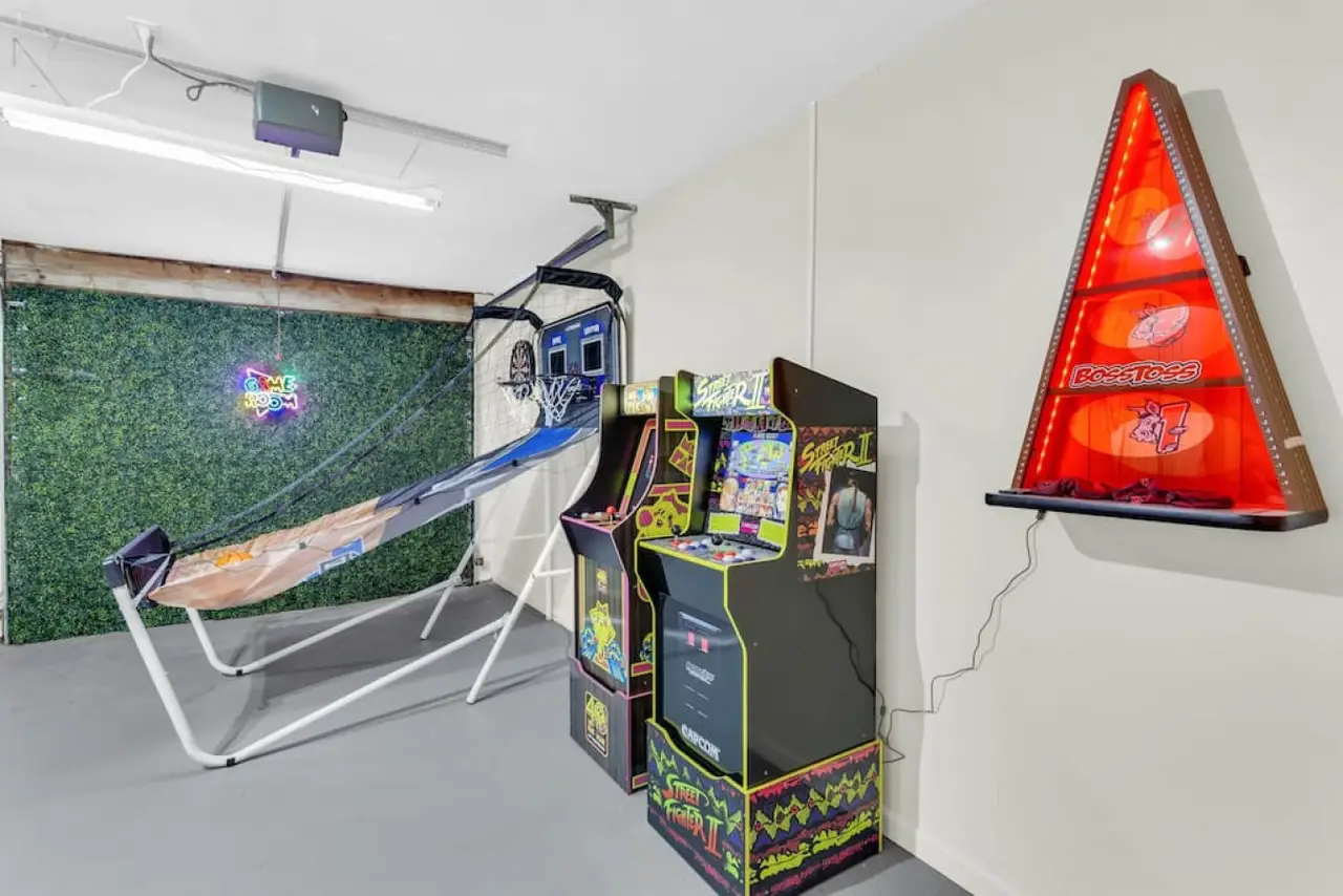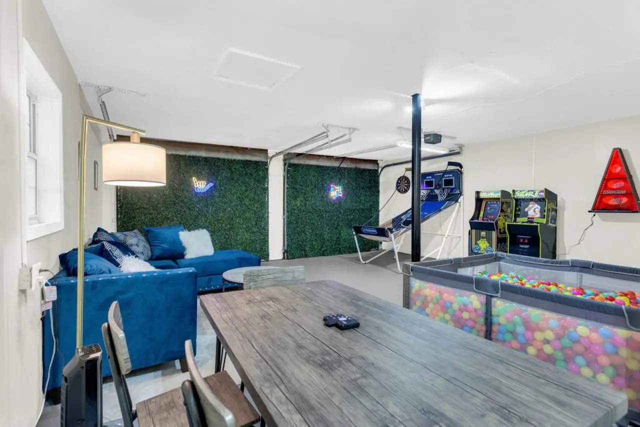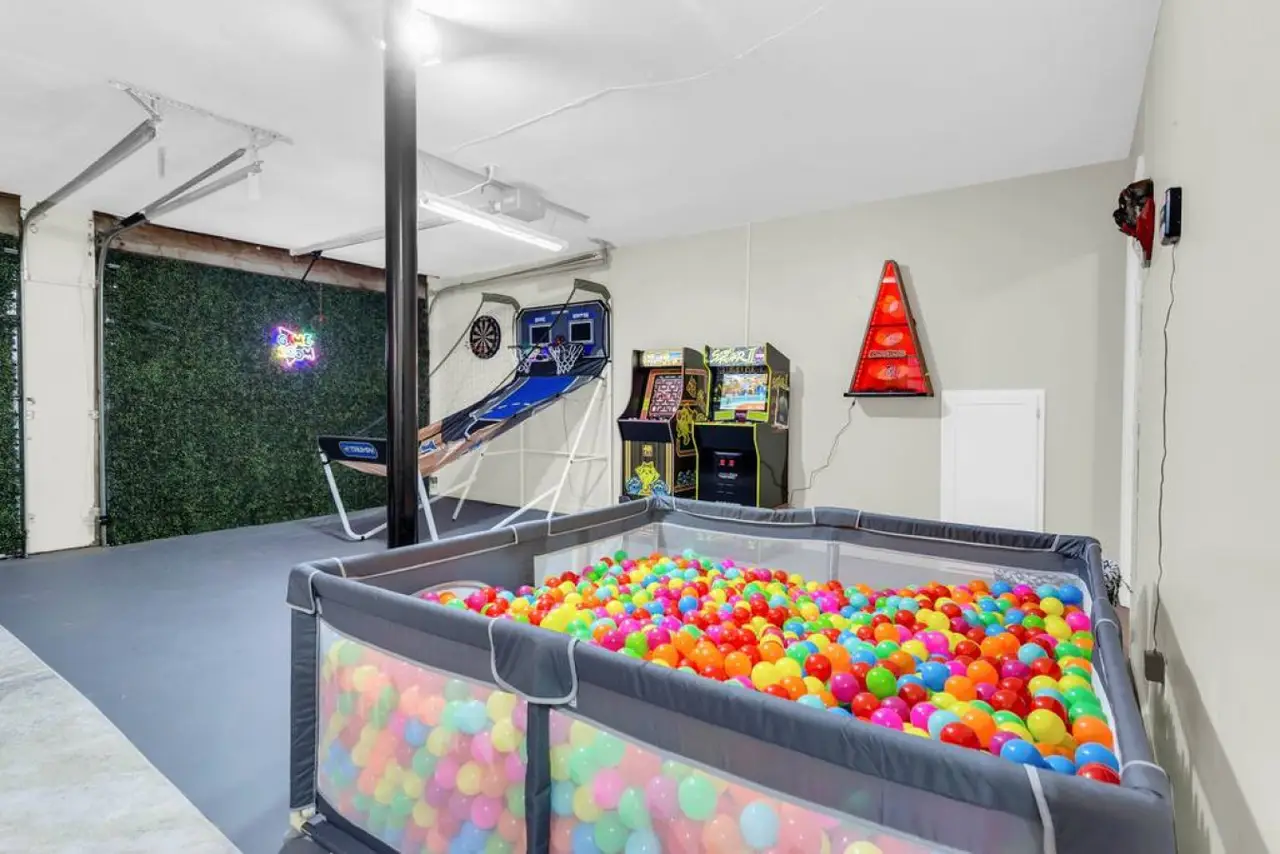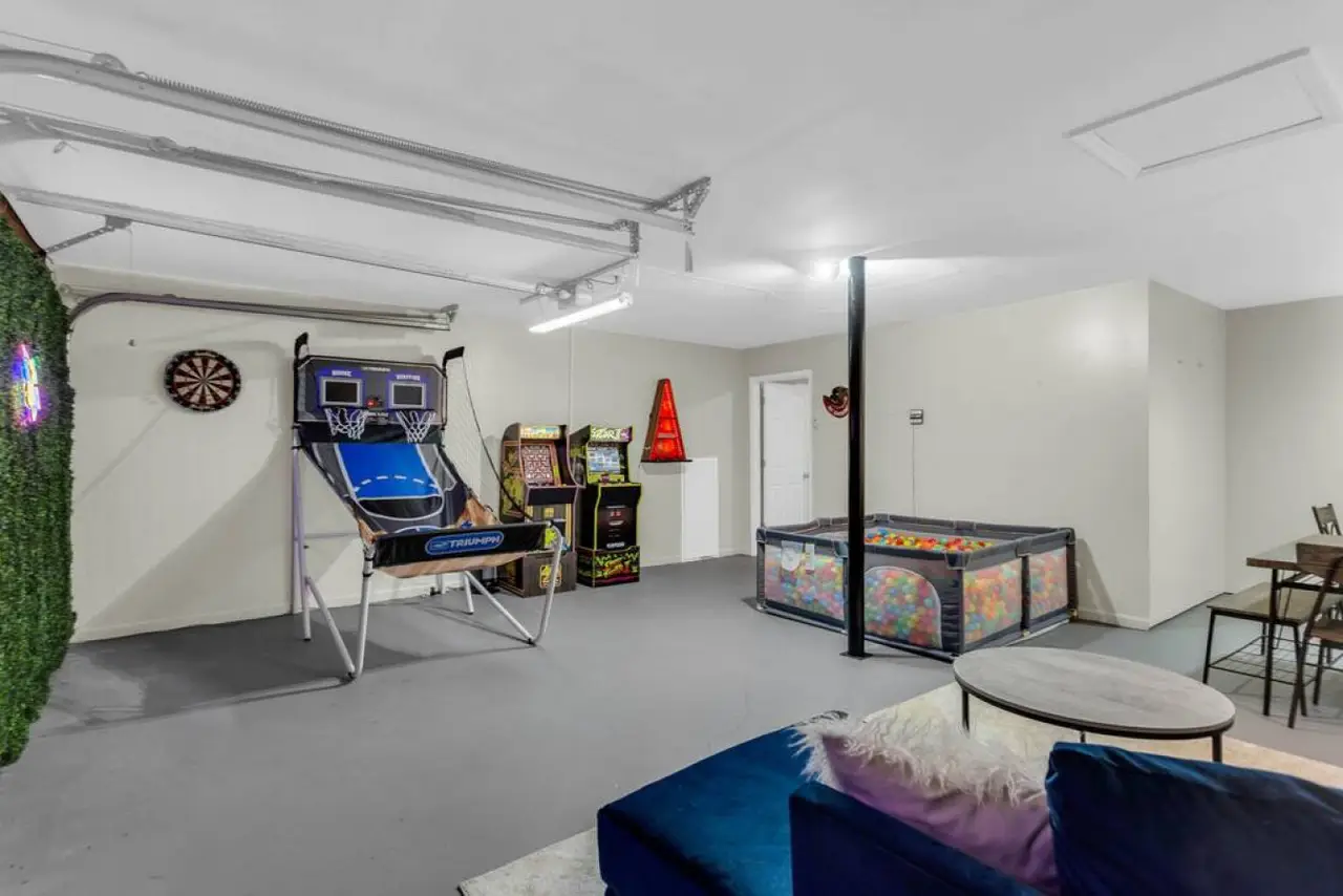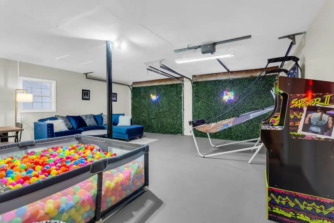 A beautiful and spacious home located in a family-friendly community in the city of Roswell Georgia, a northern suburb of Atlanta. This home has beautiful and spacious rooms, with a sleeping capacity for up to 10 people. Amenities in the home include a fully equipped kitchen, laundry room, video games, and more. The backyard has a beautiful deck and shaded area to enjoy a relaxing evening. Ready for some friendly competition? Head to the game room, where excitement awaits! Whether you're challenging each other to a game of basketball, a ball pit, or immersing yourself in the latest video games, this versatile space promises hours of entertainment for guests of all ages.