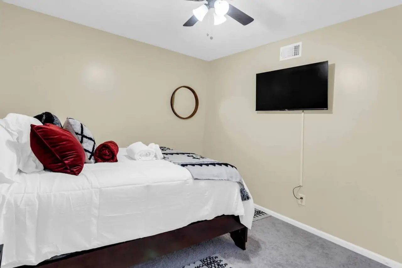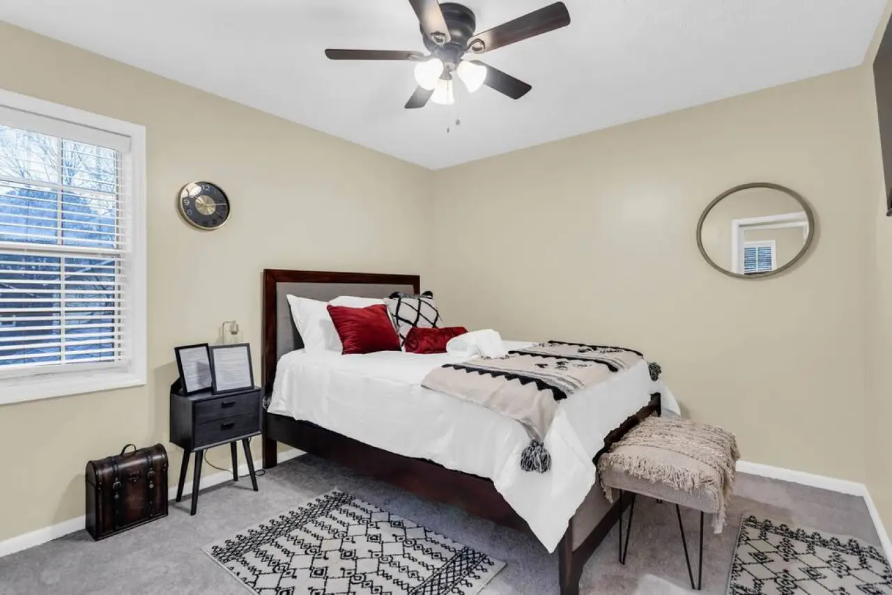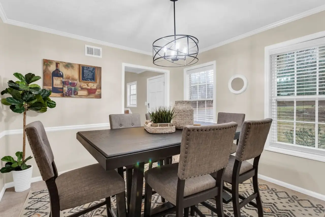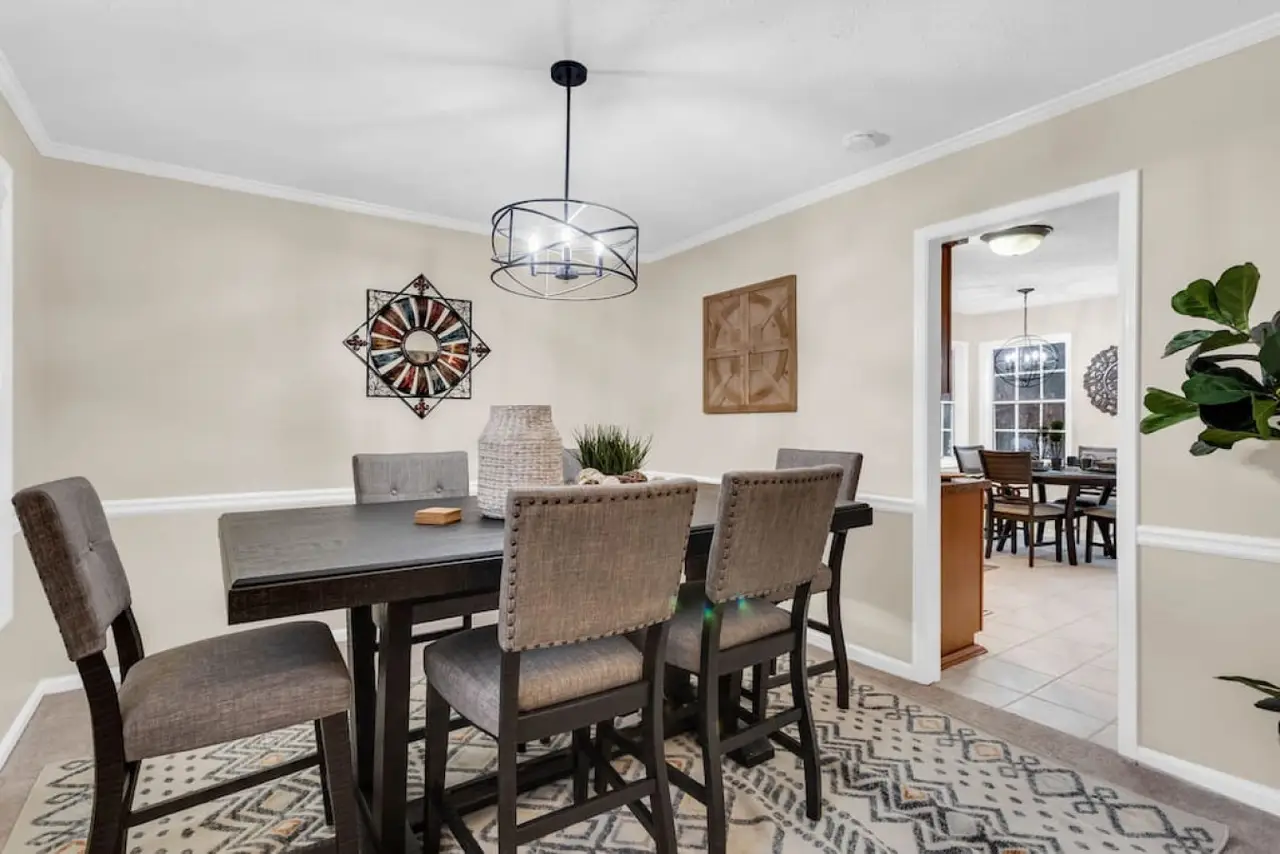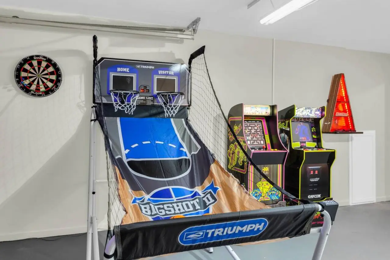 A beautiful and spacious home located in a family-friendly community in the city of Roswell Georgia, a northern suburb of Atlanta. This home has beautiful and spacious rooms, with a sleeping capacity for up to 10 people. Amenities in the home include a fully equipped kitchen, laundry room, video games, and more. The backyard has a beautiful deck and shaded area to enjoy a relaxing evening. Ready for some friendly competition? Head to the game room, where excitement awaits! Whether you're challenging each other to a game of basketball, a ball pit, or immersing yourself in the latest video games, this versatile space promises hours of entertainment for guests of all ages.