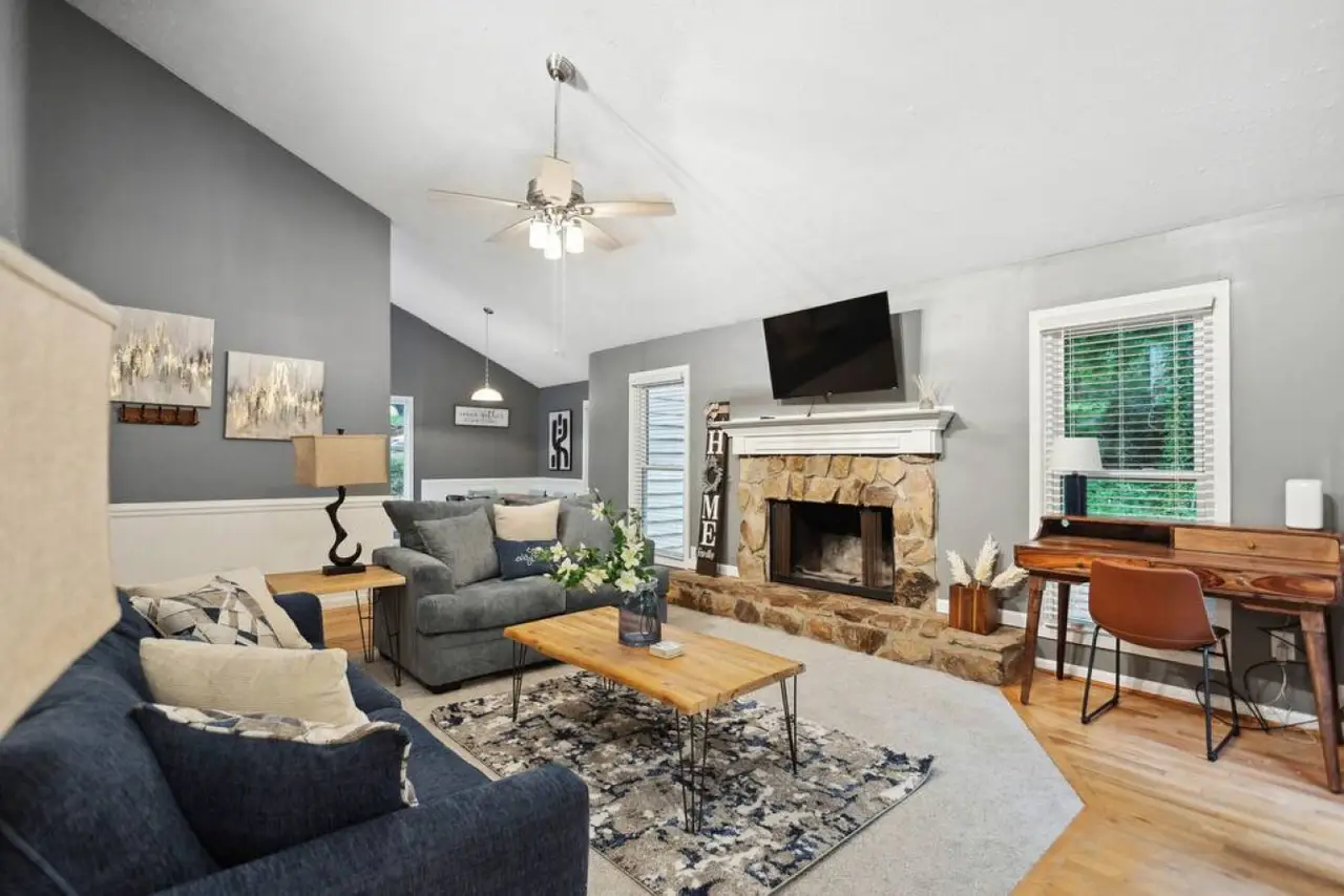 Rustic Charm Meets Modern Comfort: Your Perfect 5-Bedroom Cabin Retreat! Escape to the tranquility of nature and embrace the rustic charm of our 5-bedroom cabin-like home nestled in the serene surroundings of Marietta. Whether you're seeking a cozy getaway with loved ones or a secluded retreat with friends, our inviting property offers the perfect blend of comfort and adventure. Step inside and be greeted by the warm and inviting ambiance of our cabin-like home. With its exposed wooden beams, stone fireplace, and cozy furnishings, you'll feel as though you've stepped into your own private mountain retreat.